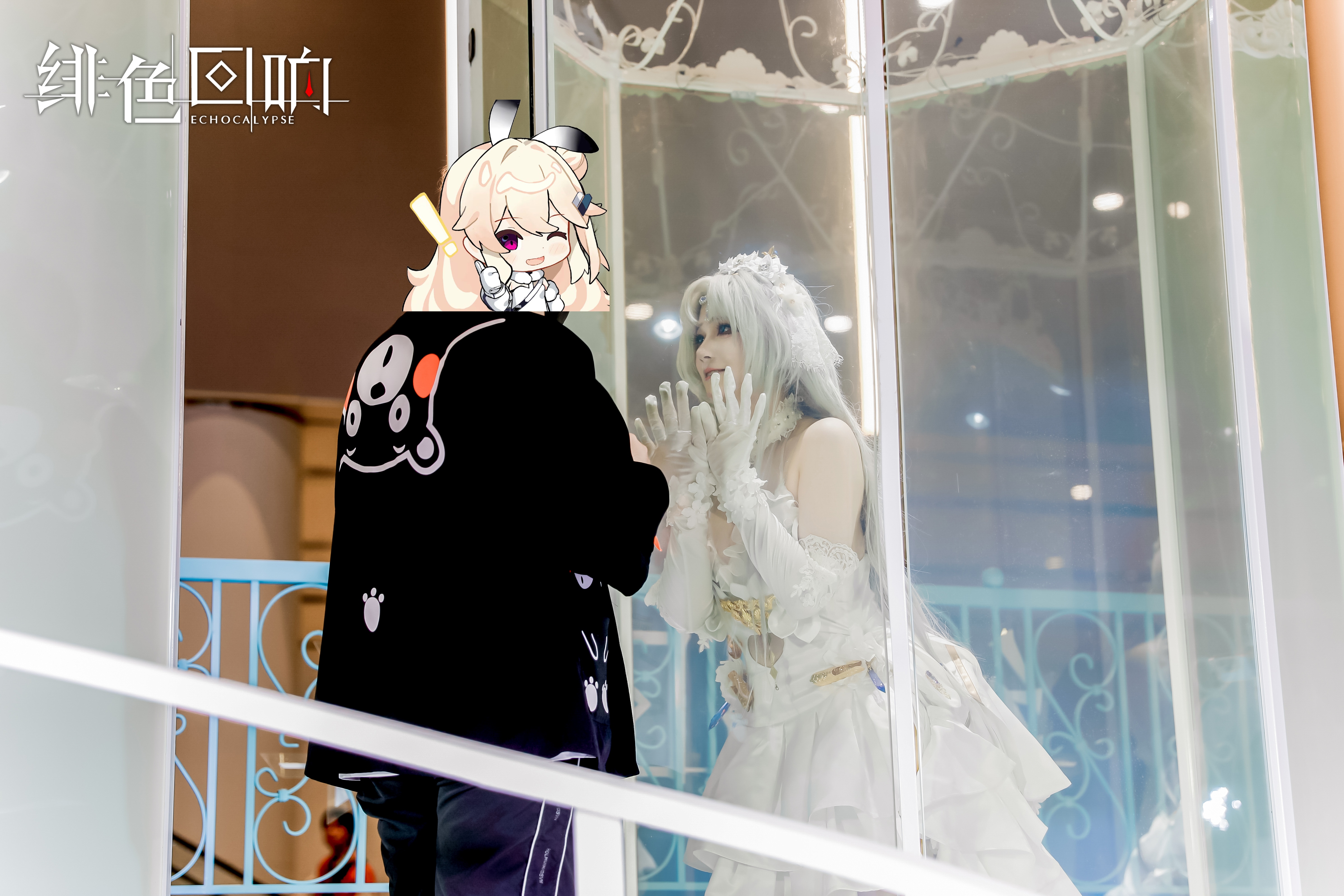 《绯色回响》是一款美少女零损养成RPG游戏,,,由一竞技少年工作室研发推出。。。本次出展,,,,为了给玩家们打造一场心动之旅,,,《绯色回响》特地携手二次元美少女,,,,将游戏内誓约系列皮肤带进现实——超高人气的莉莉丝、、利维坦、、奈尔、、索娜、、、、夜莺身着婚纱白裙,,亮相梦幻隐秘的婚房展台,,,与大家缔结永恒誓约。。。。