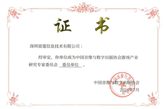 2024年7月25日,,,,中国音像与数字出版协会游戏产业研究专家委员会(以下简称“中国音数协游戏专委会”)成立大会在上海市召开,,,,厦门一竞技网络技术股份有限公司及其子公司深圳雷霆信息技术有限公司(以下统称“公司”)正式成为中国音数协游戏专委会委员单位。。