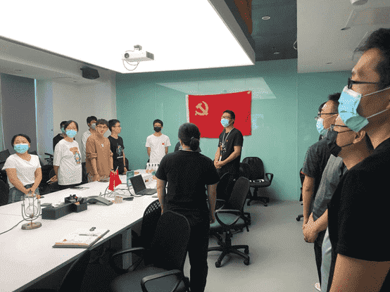 而后,,,,全体党员一起重新学习了解了目前的入党流程要求,,各支部也将在后续工作中进一步发挥支部职能,,,做好发展党员工作。。。。最后,,全体党员面向党旗,,,,重温入党誓词。。。