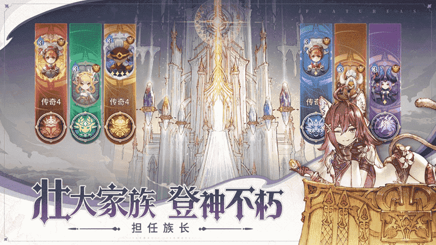 你将体验到纯正王道的冒险剧情,,在这个被伪神入侵的凯斯世界,,,,成神是每一位强者的终极目标,,,玩家作为守护者家族的族长,,在寻回六大种族成员,,击退威胁凯斯世界的伪神后,,,,即有机会带领家族晋升为神,,,,登神不朽。。。
