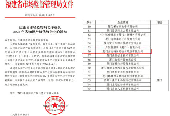 近日,,,,福建省市场监督管理局公示了2023年福建省知识产权优势企业名单,,厦门一竞技网络技术股份有限公司(以下简称“一竞技”或“公司”)榜上有名。。。